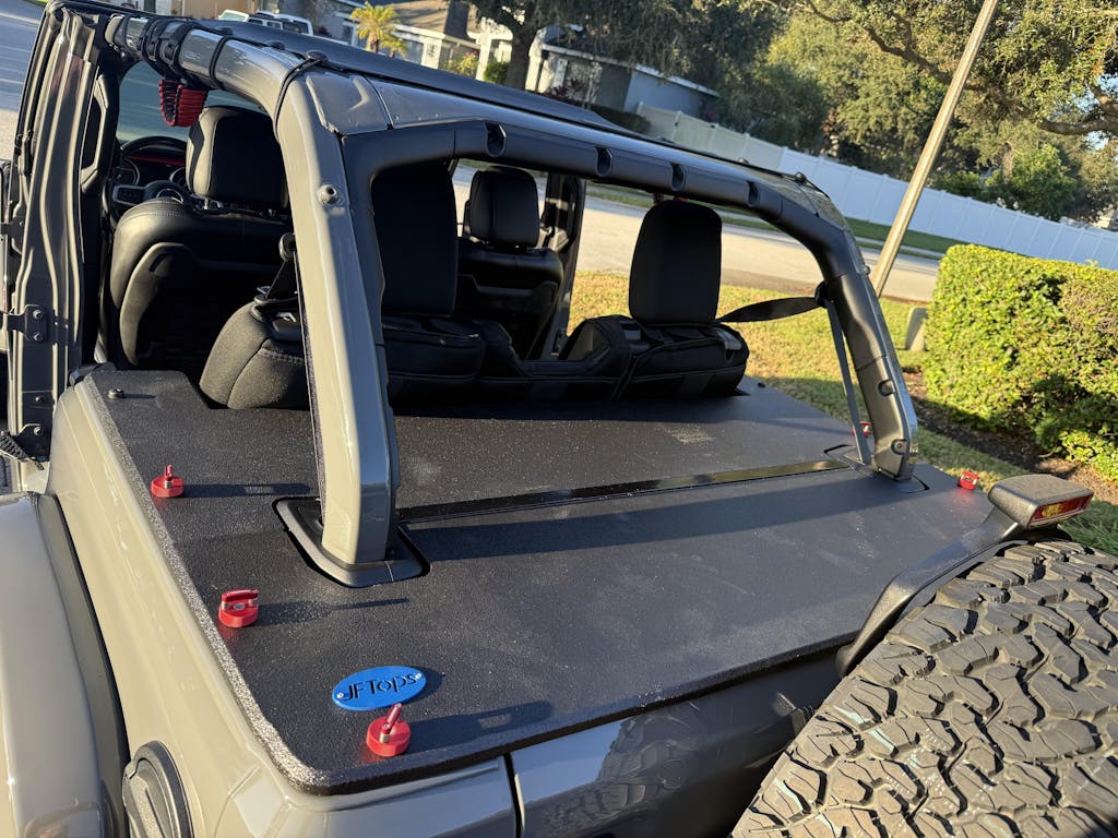 This is a GREAT addition to the cargo area of my Jeep to not only e able to quickly remove my Jeep’s top, but also work as several tie-down points for loose cargo in the back. There are various colors to choose from and I chose red thumb fasteners to scent my Jeep’s interior-! Choose a color and order your soon for the summer!!!